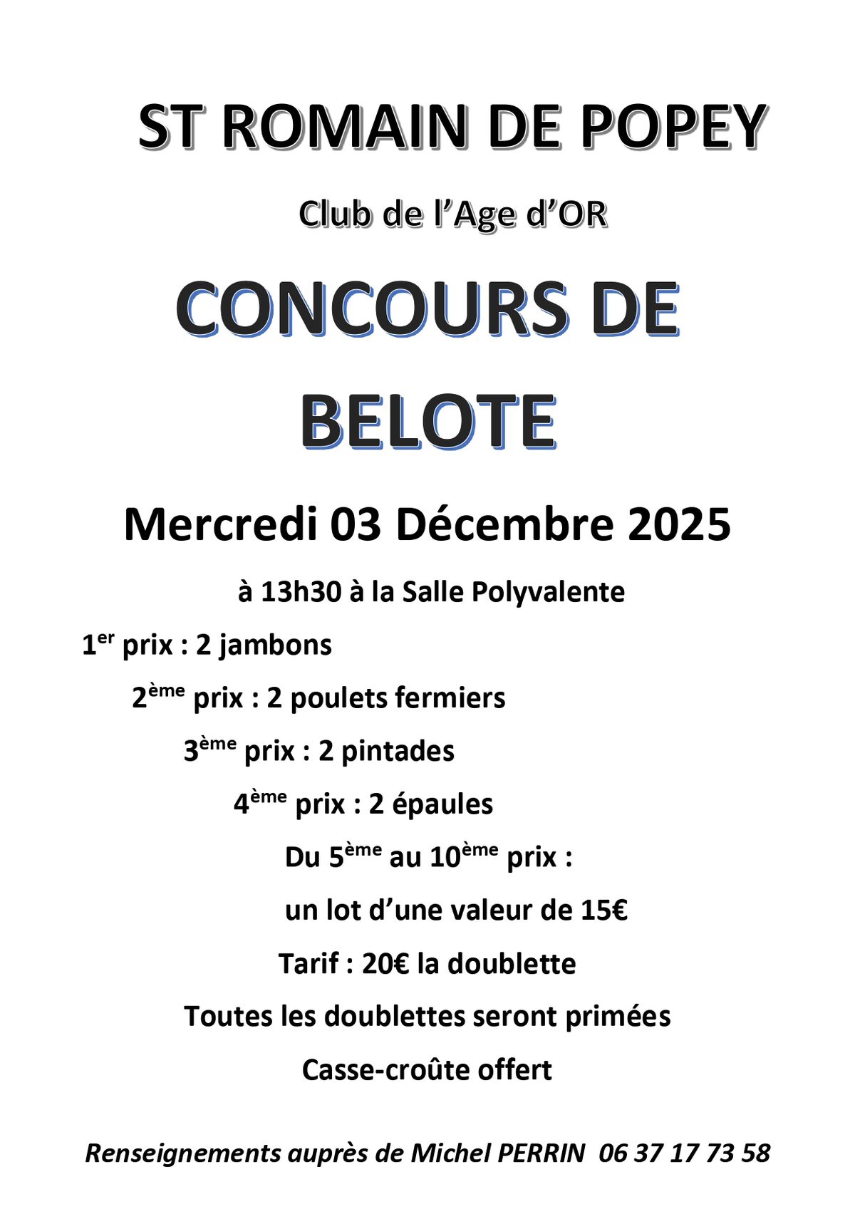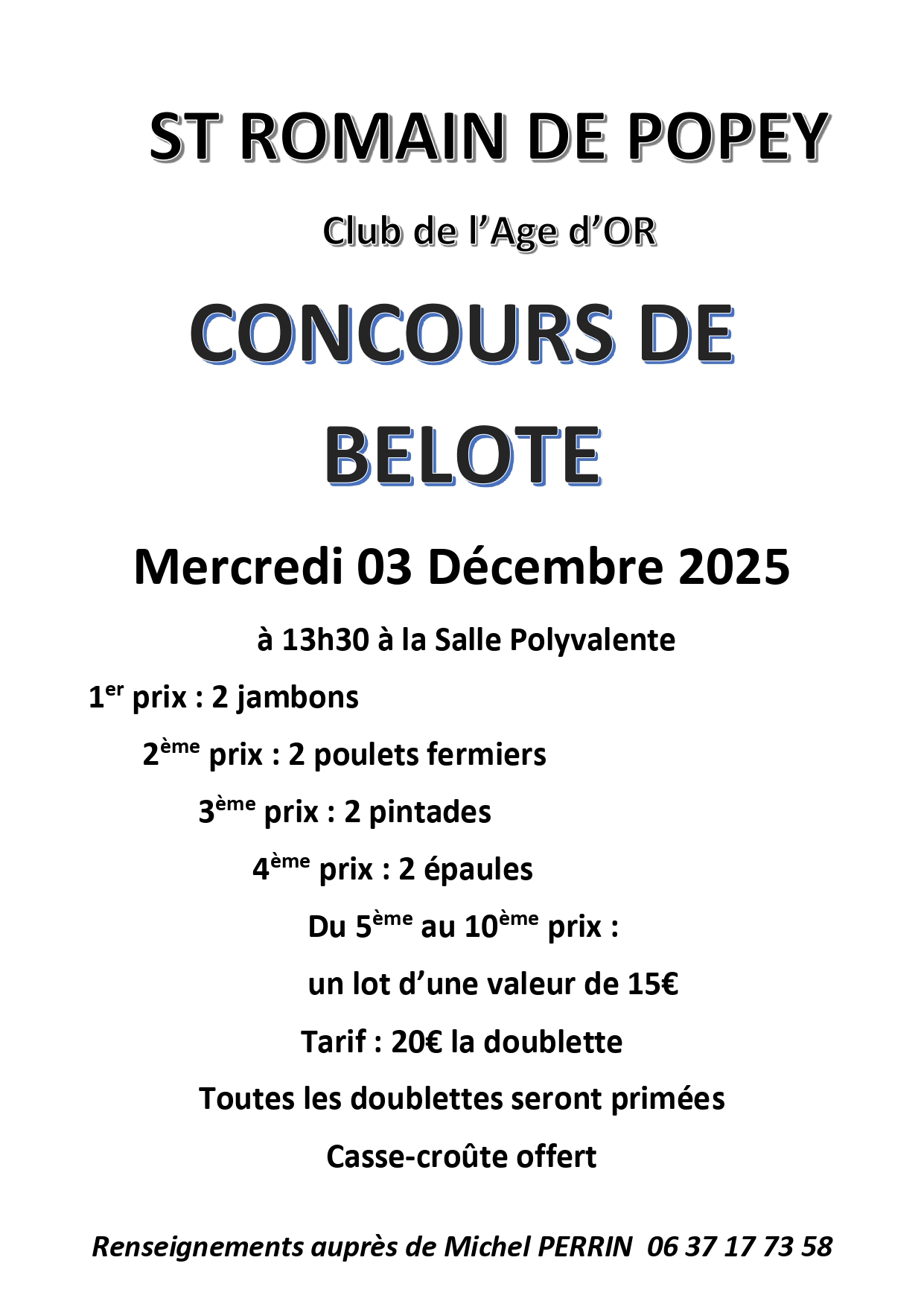 organise son concours de belote le Mardi 03 Décembre dès 13h30